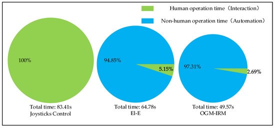 The experimental results in Table 3 indicate that the proposed OGM-IRM algorithm significantly reduces the task completion time and human–machine interaction time, enhancing the efficiency of completing high-difficulty tasks and expanding the range of executable tasks for the WMRA.