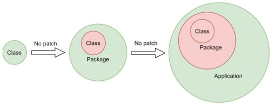 11]. The search space for repair ingredients is divided into classes, packages, and applications, from small to large. A heuristic algorithm preferentially finds repair ingredients in the smallest search space. If no suitable repair ingredients are found, the search space is gradually expanded. This strategy limits the size of the search space to a certain extent so that the search algorithm can quickly find suitable repair ingredients. Compared with the approaches that have been proposed, SLARepair can effectively alleviate the problems caused by the large search space.