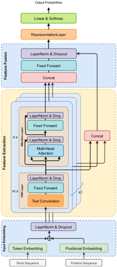 In recent years, with the continuous maturity of deep learning technology, significant progress has been made in text classification. A series of deep learning models based on convolutional neural networks (CNN), recurrent neural networks (RNN), and attention mechanisms have been widely applied to text classification tasks. The core problem of text classification lies in the extraction and representation of text features, in which deep learning technology [1,2,3] has more advantages over traditional machine learning [4,5,6,7] methods. Its multi-layered and complex neural network structure can automatically learn the hidden features of text from data, and therefore, it can achieve better classification results than shallow learning models.