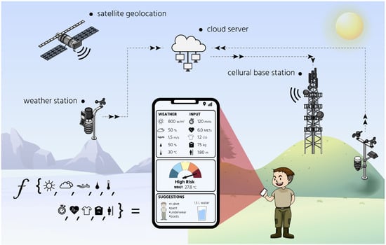 - Kingma, B.R.M.; Steenhoff, H.; Toftum, J.; Daanen, H.A.M.; Folkerts, M.A.; Gerrett, N.; Gao, C.; Kuklane, K.; Petersson, J.; Halder, A.; et al. ClimApp—Integrating Personal Factors with Weather Forecasts for Individualised Warning and Guidance on Thermal Stress. Int. J. Environ. Res. Public Health 2021, 18, 11317. [Google Scholar] [CrossRef] [PubMed]