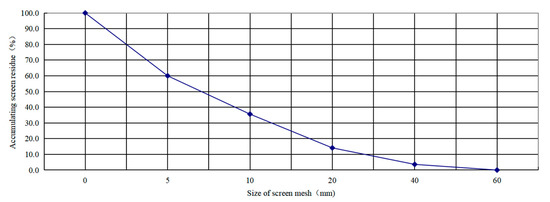 Six sets of tests were performed on specimens with a diameter of 30 cm and height of 60 cm. Conventional triaxial tests were conducted to determine the ultimate deviator stress (qf) at the time of damage. Graded loading was applied to reduce the creep test time and the dispersion of specimens. The selected creep stress levels were 0.2qf, 0.4qf, 0.6qf, 0.8qf, and 1.0qf, respectively. In the following, we abbreviate the stress level as ‘SL’ and the corresponding unused stress level is abbreviated as ‘SL = 2′’, ‘SL = 4′’, ‘SL = 6′’, and ‘SL = 8′’. A test was considered complete when the specimen axial strain reached 20%. The specimen deformation was then observed and the particle fragmentation was measured. Table 3 provides the specific creep loading scheme.