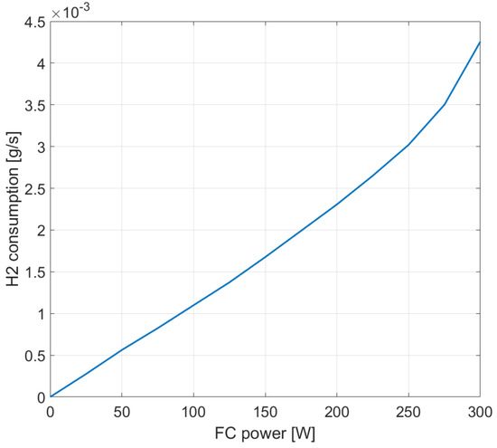 Fuel cell FCS-C300 hydrogen consumption curve.
