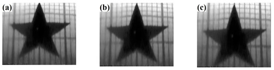 To study the influence of the unit pixel circumferential arc length i on the correction accuracy, local images of the same size are intercepted and corrected based on different maximum radii rmax using φ12 mm image as an example. The results are shown in Figure 13, where (a) rmax1 = 253 pixels, (b) rmax2 = 258 pixels, (c) rmax3 = 263 pixels, and all image size are 125 125 pixels.