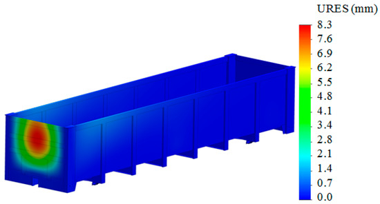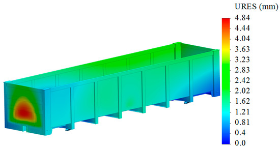 The maximum displacements were recorded in the end wall of the body and amounted to 4.84 mm (Figure 23).