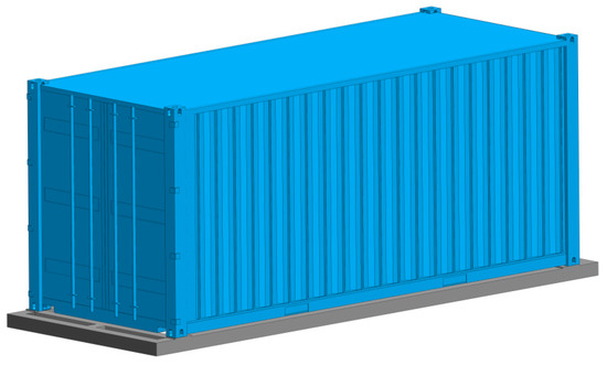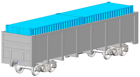 In our study, it was taken into account that two 1CC containers were placed in the open wagon. The design diagram is shown in Figure 2.