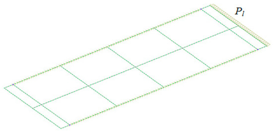 When drawing the design diagram of the module, it was taken into account that the longitudinal load Pl, caused by the forces of inertia, acted on the telescopic cantilever part (Figure 13). This load was applied on one side of the module; i.e., it simulated its leaning against the end wall of the open wagon. The calculation was carried out under the condition that the module was loaded with a 1CC standard container.