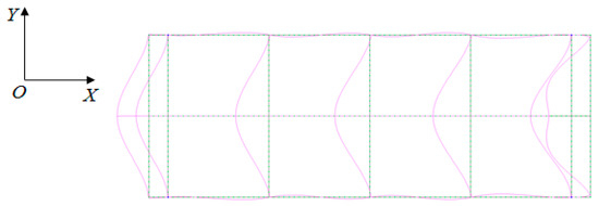 The open wagon’s body weight was taken equal to 14.6 tons, the moment of inertia was 308 t∙m2, and the wagon base was 8.65 m. The rigidity of the spring suspension of the bogie was 8000 kN/m, and the relative friction coefficient was 0.1 These parameters of the spring suspension correspond to the standard parameters of the bogie model 18-100; i.e., they correspond to its technical characteristics.