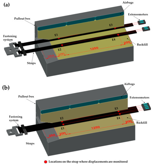 - Razzazan, S.; Keshavarz, A.; Mosallanezhad, M. Large-scale pullout testing and numerical evaluation of U-shape polymeric straps. Geosynth. Int. 2019, 26, 237–250. [Google Scholar] [CrossRef]