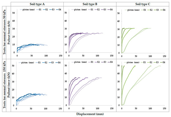 3.1. The Influence of the Grain Size Distribution of the Backfill Material and the Normal Stress on the Pullout Force of Geosynthetic Strap