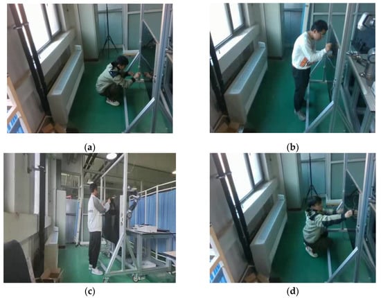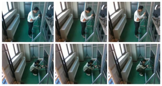 Figure 1 shows several image examples of workers’ actions while installing a solar panel, wherein sub-figures (a) and (b) come from the same type of action: ‘tie’, and (c) and (d) come from the same type of action: ‘pendulum’. We can see that the difference between the two types of actions lies only in the small differences in hand movements, regardless of whether the person is standing or not, while on the other hand, from the perspective of the overall movement, whether a person stands or not is very obvious.