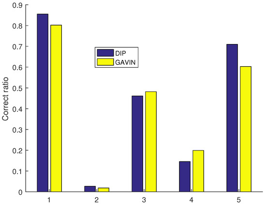 As can be seen from Figure 9, GAVIN and DIP are very close on all performance metrics. There is a 5% correlation in overall recognition accuracy, a 0.8% correlation in false negatives, a 2% difference in false positives, a 5% difference in essential protein recognition, and a 10% difference in non-essential protein recognition. The correct number of essential proteins was higher for GAVIN than for DIP. The correct number of non-essential proteins is lower for GAVIN than for DIP.