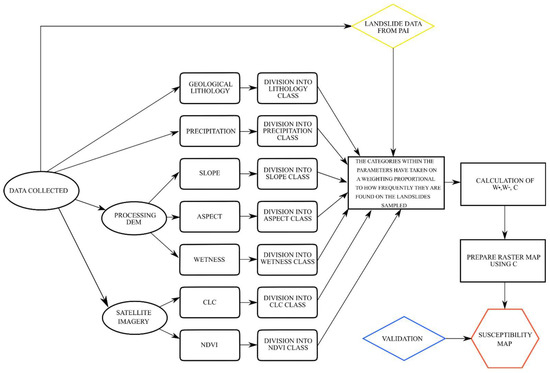 The landslide susceptibility index (LSI) was calculated as follows (Figure 3):