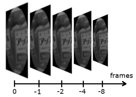 Frames stacked at increasing temporal distances, each being compared with the current frame (0) for optical flow calculation. For every step in temporal distance, extra delay is added; however, the reaction time does not have to be fast. The example frames are taken from the dataset published under open access in Ref. [20].