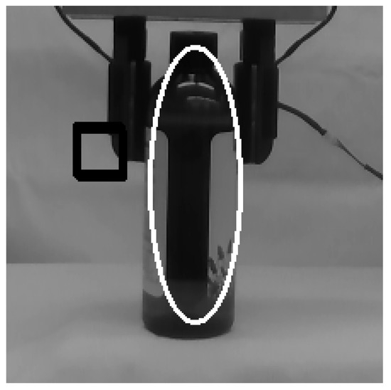 The ellipse estimating the object boundaries is stabilized relative to the gripper by matching a template. The black rectangles represent where in the image the template was found. The image is part of the dataset published under open access in Ref. [20].