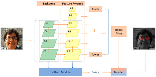BlendMask is a one-stage dense instance segmentation method that combines the concepts of top-down and bottom-up methods. It adds a bottom module on the basis of the anchor-free detection model FCOS [33] to extract low-level detailed features and predict an attention mechanism at the instance level. Hao Chen et al. drew inspiration from the fusion methods of FCIS [34] and YOLACT [35] and proposed the Blender module to better integrate these two types of features.