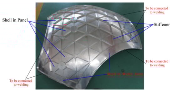 The panel structure includes the development of the semi-monocoque shell structure. The strengthening components and the shell of the panel do not need to be riveted, screwed, welded or connected by other methods but are manufactured as a whole, semifinished product. Compared with the semi-monocoque shell structure, the panel structure greatly improves the load-bearing efficiency, fatigue resistance and reliability, effectively reduces the structural quality, and has the advantages of less parts, short process cycle, high strength and stiffness [,,].
