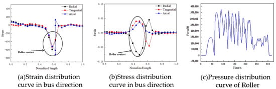 After fully obtaining the high temperature thermal deformation law of 5B70, the process simulation of the spinning process was carried out. Through the strain analysis, stress analysis, roller force analysis, wall thickness analysis and defect analysis of the spinning process, the whole field strain distribution, stress distribution, force value of roller force, wall thickness and defect-sensitive parts (as shown in Figure 18) of the spinning process were mastered, which provided the basis for optimizing and determining the spinning times and process parameters. According to the law of spinning process simulation, the spinning process parameters of 5B70 structural parts with 70 mm thickness and large size were formulated, and 5B70 spinning parts with 70 mm thickness and Φ3500 mm diameter were successfully prepared (as shown in Figure 19).