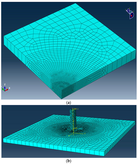 14] was established based on the ABAQUS platform, in order to obtain explicit analysis. Furthermore, three-dimensional solid elements were selected, and the local division of the finite element model mesh and the overall model are shown in