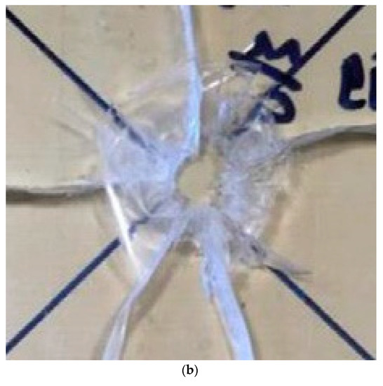 Figure 11b proposes the deformation contour of the PMMA plate after impacting, while