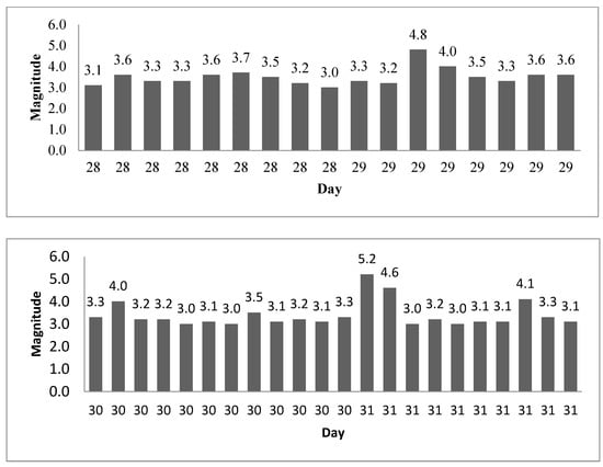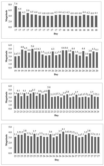 The estimated earthquakes’ magnitudes are shown in Figure 3.