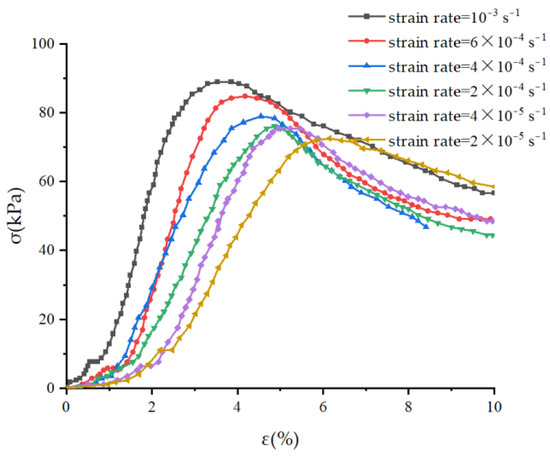 Stress–strain curves of soil under different strain rates.