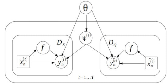 The meta-learning literature usually interprets the meta-learning problem as Bayesian inference in a hierarchical graphical model, where ideas of HB or EB models for meta-learning have been widely used in the past few years. For example, Ref. [2] considered an HB model that improved MAML [5] to compute posteriors via amortized variational inference. Ref. [10] proposed a gradient-based algorithm, which minimized the objective function of meta-learning based on the HB model using the PAC-Bayesian Analysis. Ref. [11] introduced a new and rigorously formulated PAC-Bayes few-shot meta-learning algorithm, which implicitly learns a prior distribution of the model of interest. Ref. [12] used the EB model to construct a variational posterior by introducing a transduction network with a synthetic gradient. Other similar Bayesian VI-based HB methods are referred to [7,13,14]. Moreover, the empirical risk minimization (ERM) perspective has been successfully applied to a variety of few-shot learning models [15,16,17]. However, the HB model lacks the ability to handle large complex models or high-dimensional datasets due to its high computational costs for inference. Recent research developments have been used to scale Bayesian meta-learning into large datasets. For instance, Ref. [4] inferred episode-specific latent variables, and Ref. [10] learned the separated posterior weights for each task.