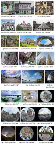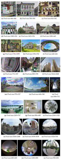 Test results of the LSD algorithm for different lens imaging images. (a–h) Regular lens images, (i–p) wide-angle lens images, and (q–x) fisheye lens images.