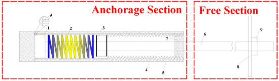The RDEA bolt consists of multiple components, and the internal structure is detailed in Figure 1. The overall movement of the various components is divided into three stages, linear elastic movement stage, shear friction movement stage, and displacement recovery stage, which correspond to different external loads.