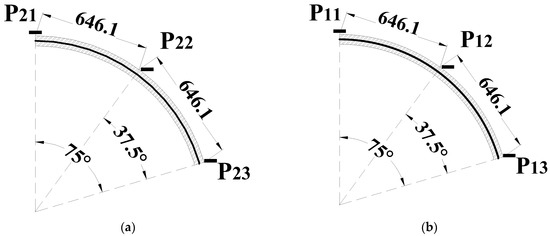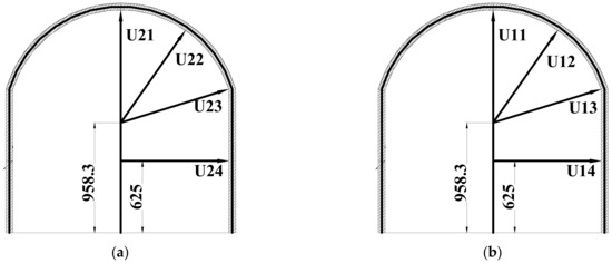 Displacement measurement point layout diagram: (a) conventional steel-bolt-reinforced test section and (b) RDEA-bolt-reinforced test section.