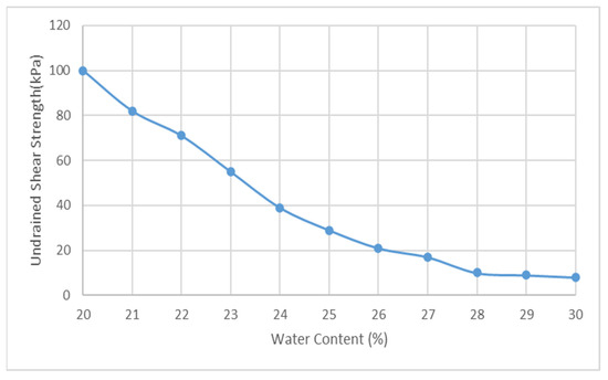 44]. Various test samples were prepared using different water contents, and the undrained shear strength was determined [