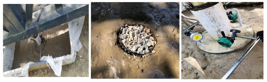 Figure 2. Single stone column tests were conducted on the columns with 50, 75, and 100 mm diameters using a 200 mm loading plate. The area replacement ratio is determined as the proportion of the cross-sectional area of stone columns to the entire area of the foundations and is indicated in the literature. In these experiments, the percentages were 6.25, 14.06, and 25% for the columns with the diameters of 50, 75, and 100 mm, respectively.