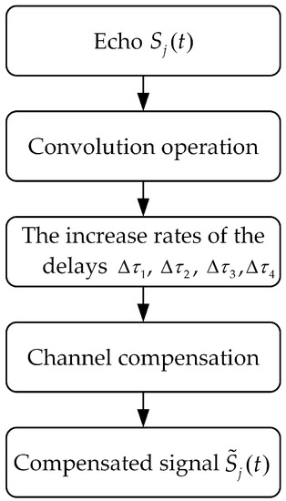 The increase rate of the echo delay can be used to compensate for the delay in the echo signal measured by each channel in each section. The compensated signal can be described as: