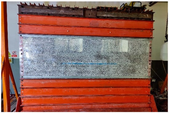 The 8210 working face of the Majiliang Mine, located in Datong City, China, was the object of this experiment. The strike length of 8210 working face in the Majiliang Mine is 2533 m; the width of the working face is 200 m; the buried depth of the mining range is 450–550 m; the average thickness of the coal seam is 6.7 m; and the average dip angle of the coal seam is 1–4°. The fully mechanized mining method is complete with a roof collapse. Based on the research object and the experimental conditions, the geometric ratio of the model was determined to be 1:100. The experiment was conducted using the existing solid–liquid coupling model testing platform with the dimension of 3000 mm × 1600 mm × 200 mm in the laboratory. The research objective of this solid–fluid coupling similarity model experiment was to analyze the dynamic water filling and development of water filling channels in the 8210 working-face area caused by the aquifer overlying the roof of the working face.