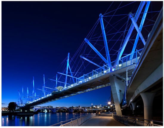 Tensegrity-inspired design for Kurilpa bridge by Arup (Courtesy of Christopher Frederick Jones/CFJPhotography www.cfjphoto.com.au, (accessed on 15 September 2022)).