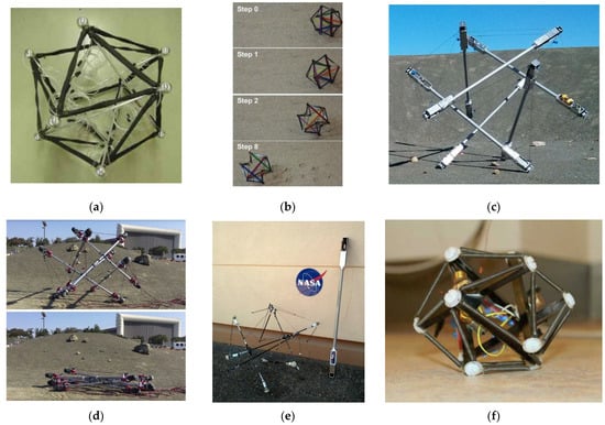 - Bruce, J.; Caluwaerts, K.; Iscen, A.; Sabelhaus, A.P.; SunSpiral, V. Design and Evolution of a Modular Tensegrity Robot Platform. In Proceedings of the 2014 IEEE International Conference on Robotics & Automation (ICRA), Hong Kong, China, 31 May–7 June 2014; pp. 3483–3489. [Google Scholar] [CrossRef]