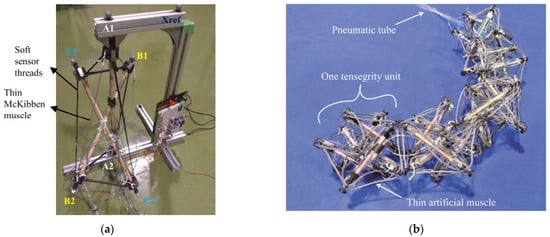 - Li, W.-Y.; Takata, A.; Nabae, H.; Endo, G.; Suzumori, K. Shape Recognition of a Tensegrity with Soft Sensor Threads and Artificial Muscles Using a Recurrent Neural Network. IEEE Robot. Autom. Lett. 2021, 6, 6228–6234. [Google Scholar] [CrossRef]