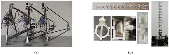 - Feng, X.; Wu, Z.; Wang, Z.; Luo, J.; Xu, X.; Qiu, Z. Design and experiments of a bio-inspired tensegrity spine robot for active space debris capturing. J. Phys. Conf. Ser. 2021, 1885, 052024. [Google Scholar] [CrossRef]