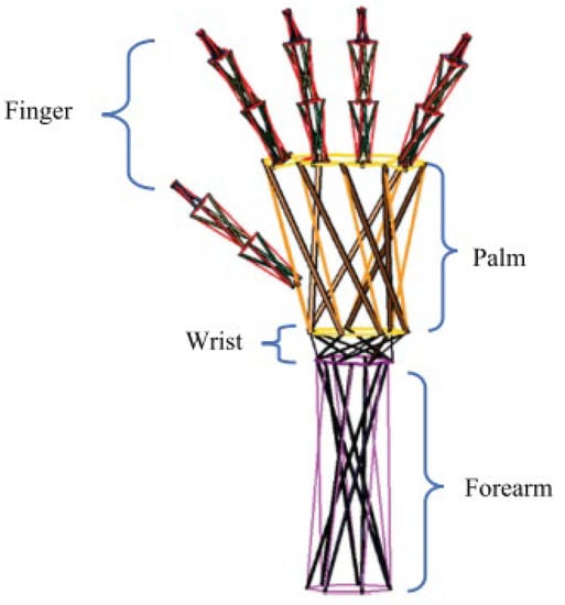 - Lee, G.; Hong, G.Y.; Choi, Y. Tendon-Driven Compliant Prosthetic Wrist Consisting of Three Rows Based on the Concept of Tensegrity Structure. IEEE Robot. Autom. Lett. 2021, 6, 3956–3963. [Google Scholar] [CrossRef]