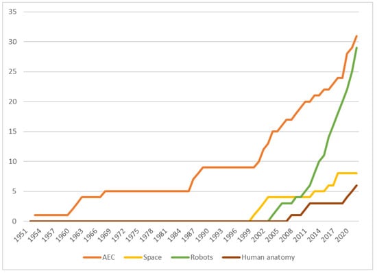 The structure of this paper is as follows: an introduction to tensegrity structures, as well as their advantages and problems, and the methodology carried out in this research, are briefly reported in the present section. Then, Section 2 introduces the applications for AEC, which includes some of the fields explained in the title: architecture and engineering related to the construction field. Spatial engineering has been considered relevant enough for being developed and explained in an independent section, the third one. Also closely related with engineering, Section 4 deals with all the applications regarding robotics and controlling. The fifth part of this communication is the shortest, but not the least important, due to its huge future potential: applications to human anatomy, prosthetics and biotechnology. The paper closes in Section 6 with the main conclusions and some insights about the exponential evolution of this line of research as well as its distribution worldwide.