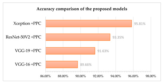 | Xception + PPC | 97.60% | 95.89% | 95.81% | 97.92 | 95.01 | 95.41 | 95.21 |