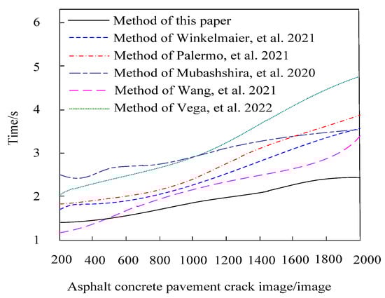 Figure 5. Time consumption of asphalt concrete pavement crack identification [5,6,7,8,9].