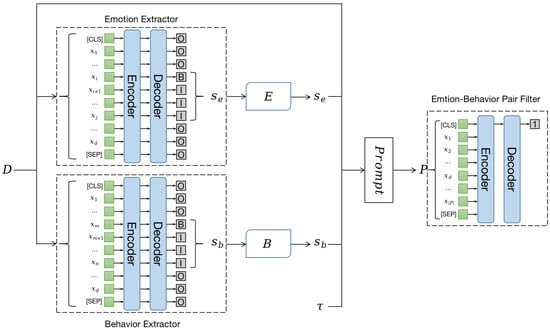 The ultimate objective of these sub-tasks is to extract emotion-driven behaviors from the text. The following subsections provide detailed explanations of the design of EDBE and the sub-tasks of emotion extraction, behavior extraction, and emotion–behavior pair filtering.
