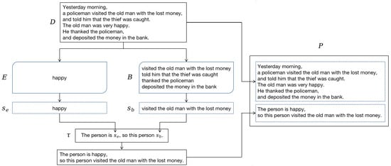 Figure 1, the cause clauses related to the keyword “happy” are “a policeman visited the old man with the lost money” and “told them that the thief was caught”. In the ECPE task, the goal is to extract both the emotion clause and its corresponding cause clause. In contrast, the EDBE task aims to extract the emotion and the behavior driven by that emotion. Specifically, the task involves extracting all behaviors, such as “visited the old man with the lost money”, “told them that the thief was caught”, “thanked the policeman”, and “deposited the money in the bank”, along with the emotion “happy” in the document. Emotion–behavior pairs are then established by matching the keyword “happy” with the behaviors it drives, resulting in identified emotion-driven behaviors.