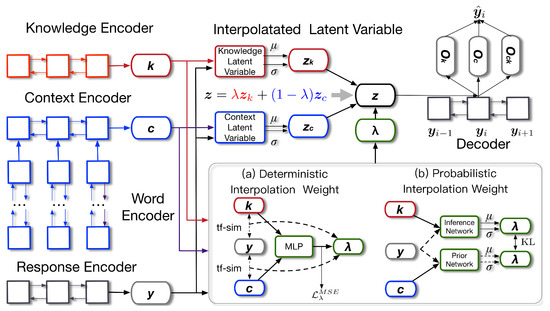 - Ye, H.; Lo, K.; Su, S.; Chen, Y. Knowledge-Grounded Response Generation with Deep Attentional Latent-Variable Model. In Proceedings of the 33rd AAAI Conference on Artificial Intelligence, AAAI 2019, Honolulu, HI, USA, 27 January–1 February 2019. [Google Scholar]