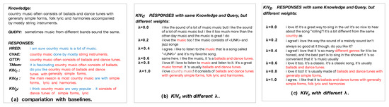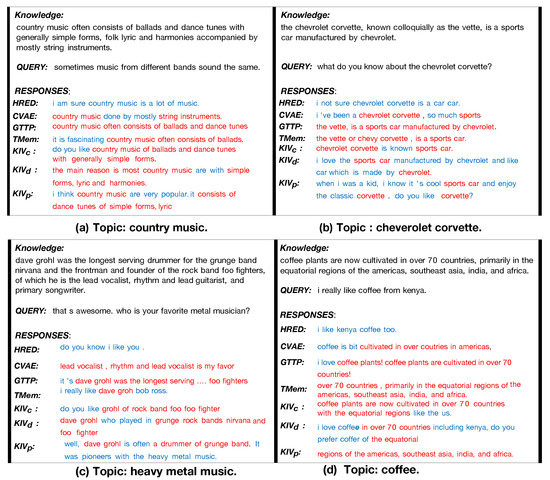 - Lin, X.; Jian, W.; He, J.; Wang, T.; Chu, W. Generating informative conversational response using recurrent knowledge-interaction and knowledge-copy. In Proceedings of the 58th Annual Meeting of the Association for Computational Linguistics, Online, 6–8 July 2020; pp. 41–52. [Google Scholar]