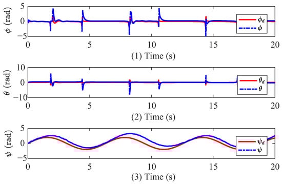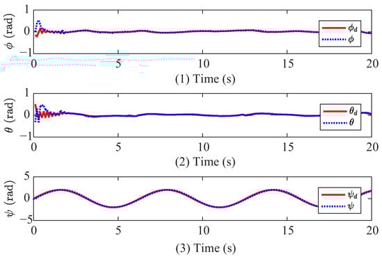 Figure 6 represent the position–attitude tracking curves of the UAV using the BDSC. It can be found that in the presence of external disturbances and internal uncertainties, the ANNBC still has good control performance with small tracking errors. For the UAV using the BDSC in