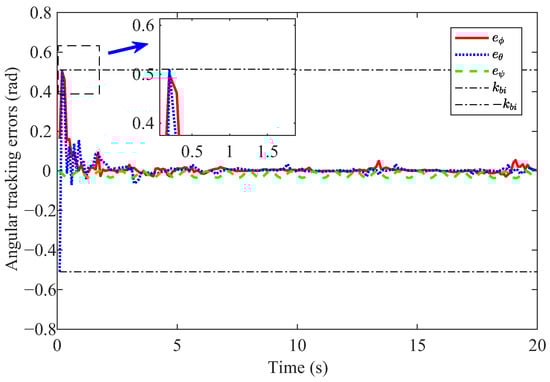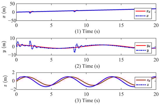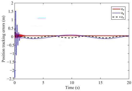 Figure 8, respectively. The position control subsystem has a large tracking error at the beginning. By introducing RBF neural networks and robust terms, the position-attitude tracking errors