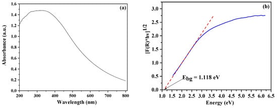 (a) UV–vis DRS spectra of N/S-Carbon QDs and (b) Kübelka–Münk plot.