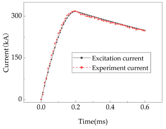 The excitation current obtained by fitting the experimental current is used in the finite element calculation in this paper, which is basically consistent with the experimental current, and more accurate calculated results can be obtained. The expression of excitation current is as follows: