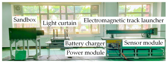 Where the sensor module is mainly used to collect experimental data, the power module and battery charger provide an excitation current for the armature, the light curtain is used to measure the armature velocity and the sandbox is used to receive the armature.